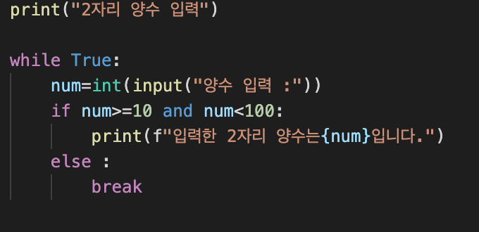 3) while 문을 이용한 무한루프와 break를 사용하여 조건에 맞는 값 입력하기