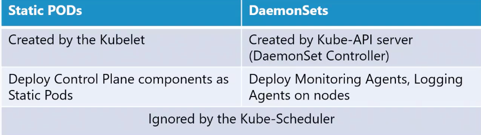 : Kubelet은 노드를 독립적으로 관리할 수 있습니다. Kubelet은 pod의 yaml파일을 저장하는 디렉터리가 있는데, 이는 외적인 API 서버나 k8s 클러스터의 변경에 영향을 받지 않고, 내부에서의 변경에만 바뀌고, 유일하게 이렇게 생성되어야만 Static Pods라고 할 수 있습니다.