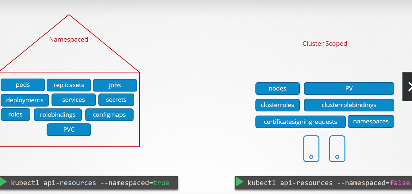 : role, rolebindings는 네임스페이스 내에서 생성된다고 앞에서 학습했습니다. 기본 Default는 기본 namespace에 생성되고, 그 내에서만 제어가 가능했습니다. 그럼 만약에 namespace에서 노드를 그룹화하거나 격리할 수 있을까요? node01이 dev-namespace의 일부라고 할 수 있을까요? 아닙니다. 그것은 클러스터 범위의 리소스입니다. 어떤 namespace와도 연결될 수 없습니다.