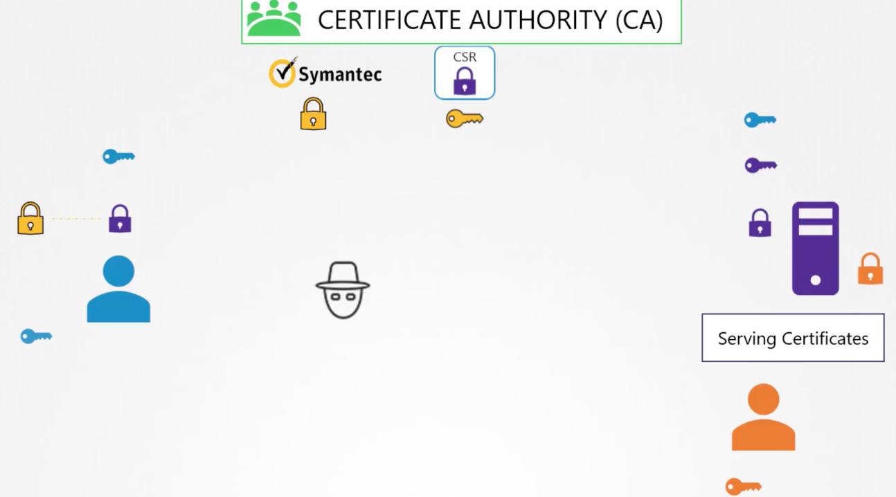 메시지를 암호화하려면 공용과 개인 키로 비대칭 암호화를 해야 해요. 관리자는 한 쌍의 키로 서버 SSH 연결을 보안해요. 서버는 한 쌍의 키로 HTTPS 트래픽을 확보해요. CA는 우리를 위해 인증서에 서명하고 유효성을 확인해주는 잘 알려진 기관입니다.