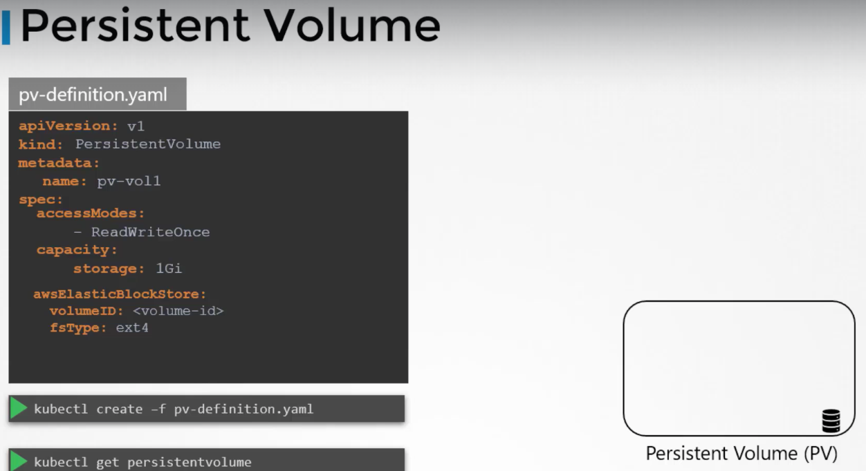 앞서 배운 Volumes는 volume 저장소를 구성하는 데 필요한 모든 구성 정보가 pod 정의 파일에 들어갑니다. 사용자가 많은 넓은 환경에서 많은 pod를 배포할 경우 사용자는 각각의 저장소를 구성해야 합니다. 스토리지를 보다 중앙에서 관리하기에는 Persistent Volume이 좋습니다.