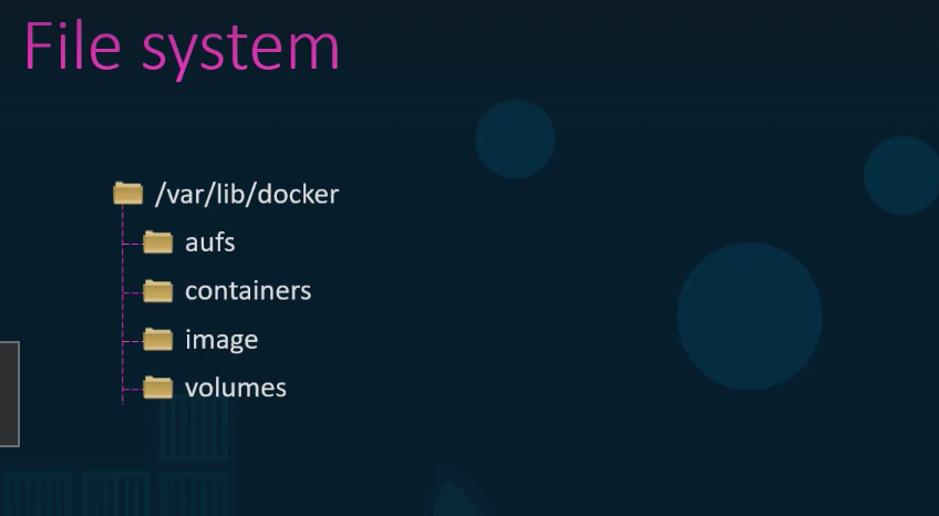 시스템에 Docker를 설치하면 이 폴더 구조가 /var/lib/docker에 생성됩니다. AUFS 컨테이너라고 불리는 것 아래에 이미지 볼륨 등 여러개의 폴더가 있습니다. 이곳이 docker가 기본값으로 모든 데이터를 저장하는 곳이죠. 여기서 데이터란 Docker 호스트에서 실행되는 이미지 및 컨테이너와 관련된 파일을 말합니다.