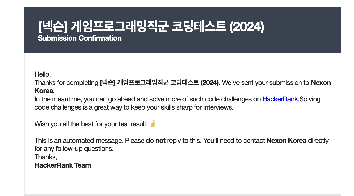 1. 서류 제출 합격 후 인성검사와 코딩테스트 관련 메일이 왔다.
