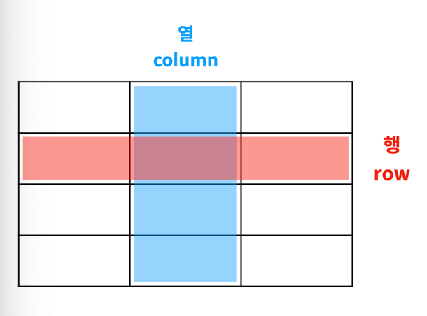 가로를 ‘행’이라고 하고, 세로를 ‘열’이라고 합니다. 표는 데이터들의 모임입니다. 그래서 표를 데이터 셋(data set)이라고도 부릅니다.