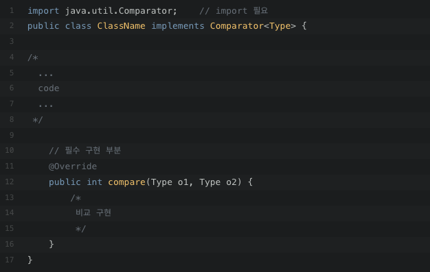 또 다른 차이점이라면 Comparable은 lang패키지에 있기 때문에 import 를 해줄 필요가 없지만, Comparator는 util패키지에 있다.