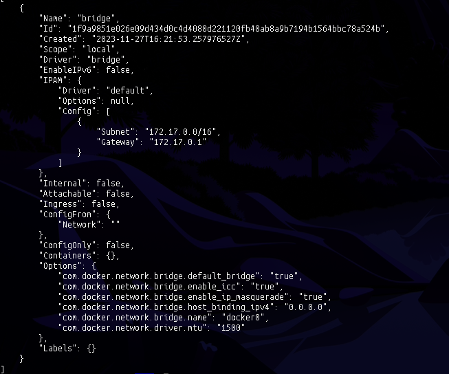 Config의 항목 서브넷과 게이트웨이가 설정돼 있는 것을 확인할 수 있다.