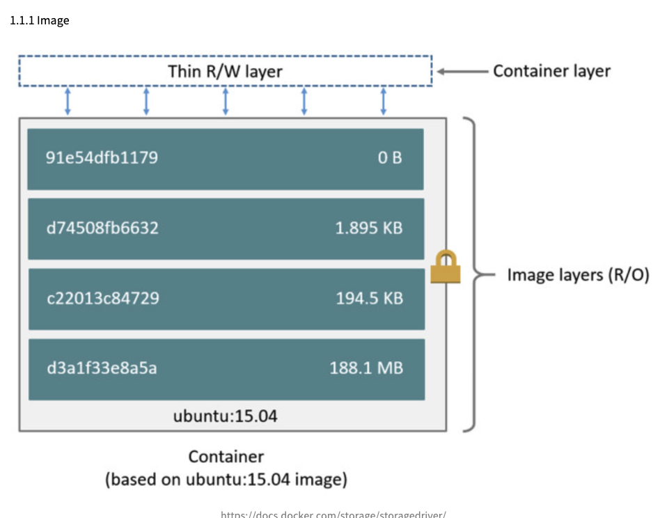 도커 이미지는 Dockerfile로 만들어진 여러 레이어로 이루어져 있고 각 레이어는 읽기만 가능(Read-only)합니다. 이미지를 가지고 새로운 컨테이너를 생성하면 읽고 쓸 수 있는 레이어가 추가되는데 이를 컨테이너 레이어라고 합니다. 컨테이너를 가지고 작업을 수행할 때 생기는 변경 사항을 모두 컨테이너 레이어에 저장하고 읽을 때는 도커 이미지에 변경된 상항을 조합해서 데이터를 읽습니다. 컨테이너가 삭제되면 컨테이너 레이너는 사리지지만, 기존 이미지는 변경되지 않고 유지됩니다.