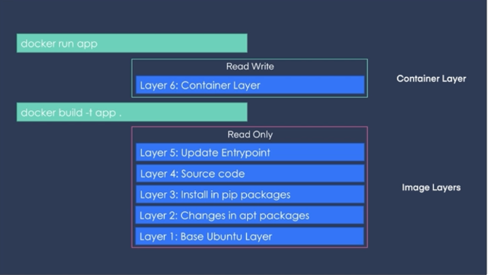 도커 이미지는 Dockerfile로 만들어진 여러 레이어로 이루어져 있고 각 레이어는 읽기만 가능(Read-only)합니다. 이미지를 가지고 새로운 컨테이너를 생성하면 읽고 쓸 수 있는 레이어가 추가되는데 이를 컨테이너 레이어라고 합니다. 컨테이너를 가지고 작업을 수행할 때 생기는 변경 사항을 모두 컨테이너 레이어에 저장하고 읽을 때는 도커 이미지에 변경된 상항을 조합해서 데이터를 읽습니다. 컨테이너가 삭제되면 컨테이너 레이너는 사리지지만, 기존 이미지는 변경되지 않고 유지됩니다.
