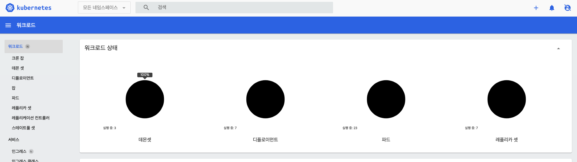 결국 쿠버네티스 대시보드에 접속을 성공하였습니다 ㅎㅎ 자꾸 생각나서 다른 것에 집중이 안되더라구요!! 혹시나 DashBoard에 아무것도 안나온다면 맨위 모든 네임스페이스가 default로 되어있을 수 있으니 수정해주시면 보일것 입니다~