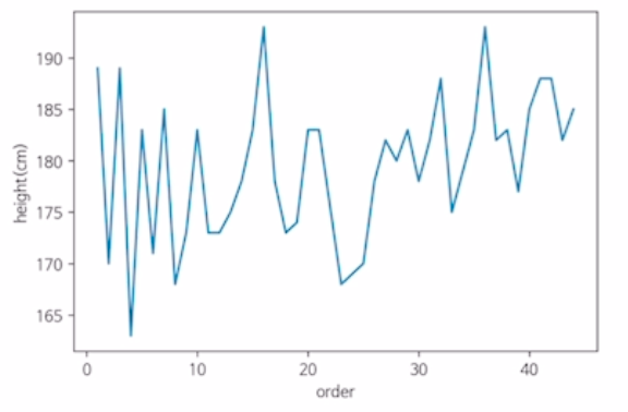 ax.plot(df[“order”], df[“height(cm)”], label=“height”)