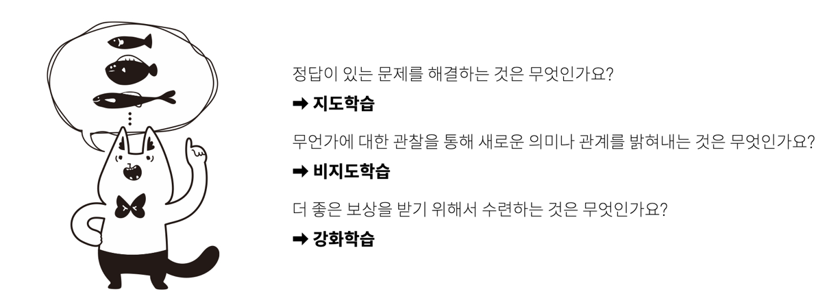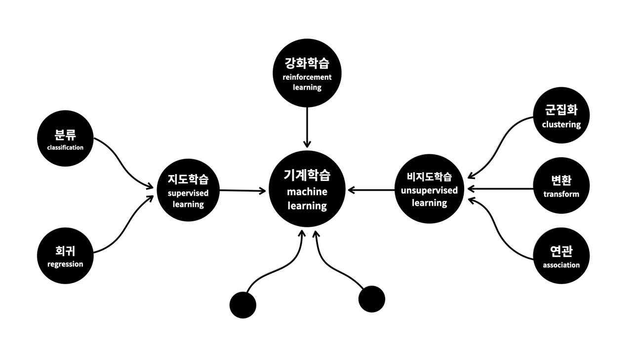 Machine Learning Types 중 가장 많이 쓰이는 것들을 그림으로 표현하면 아래와 같습니다.