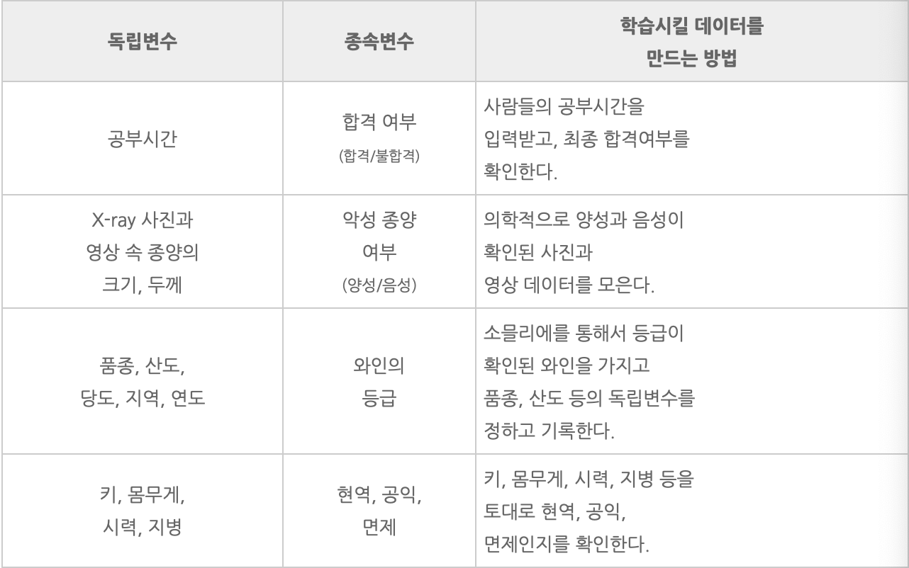 데이터는 독립변수와 종속변수로 이루어져 있어야 합니다. 이것을 지도학습으로 훈련시키면 컴퓨터는 'Model'을 만듭니다.
