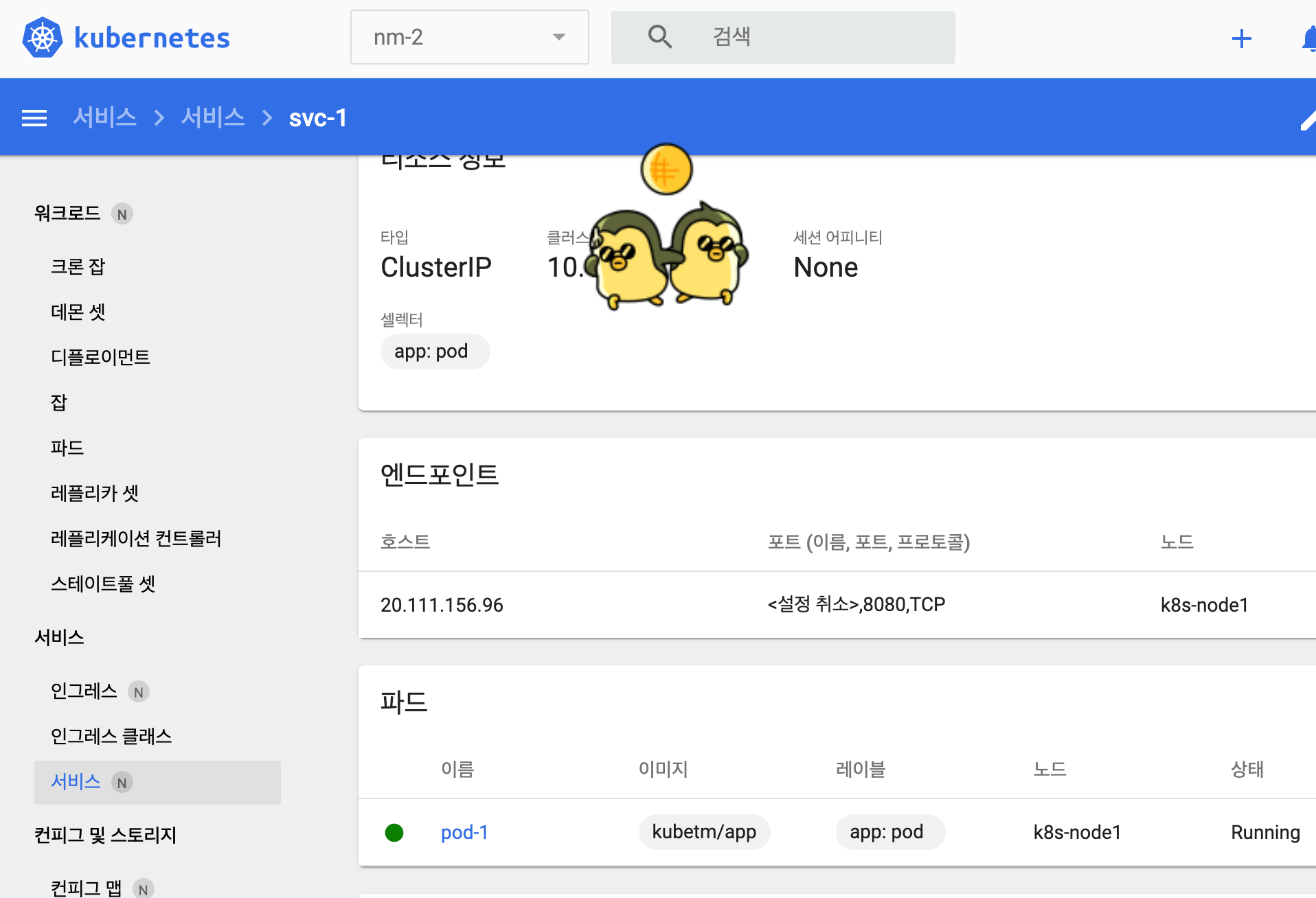 (2) 또한 Namespace 새로 생성한 후 여기에 Service, Pod를 다시 생성합니다. 이번에는 Namespace를 지정하지 않고 해볼건데 그 결과 아래 그림과 같이 앞에서 만들었던 Pod는 연결이 되지않고 1개만 연결이 되어 있는것을 통해 라벨과 셀렉터는 같은 네임스페이스에서만 유효한 것을 확인할 수 있습니다.